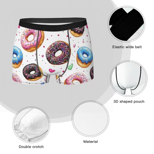 Men's Underwear Colorful Donuts and Hearts on White Boxer Briefs Breathable Comfortable 4