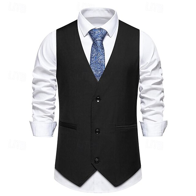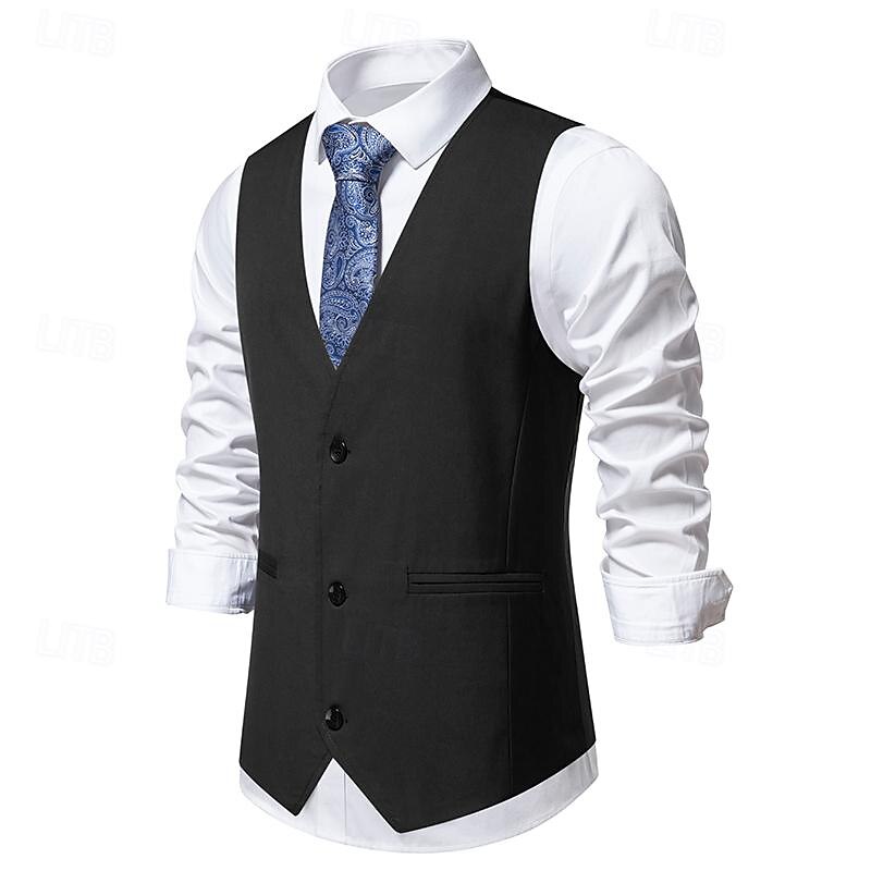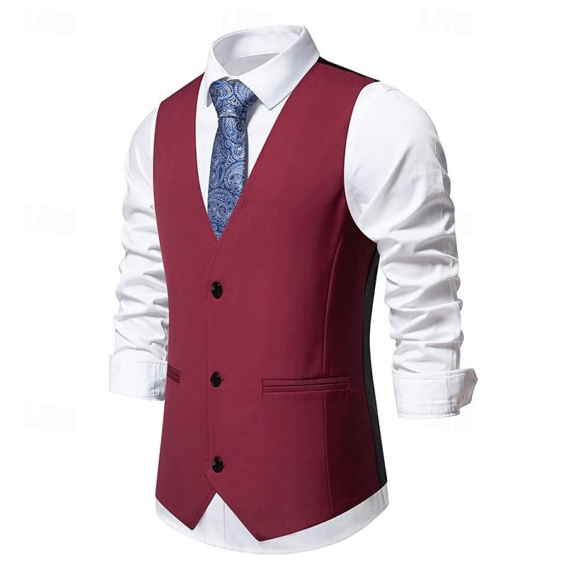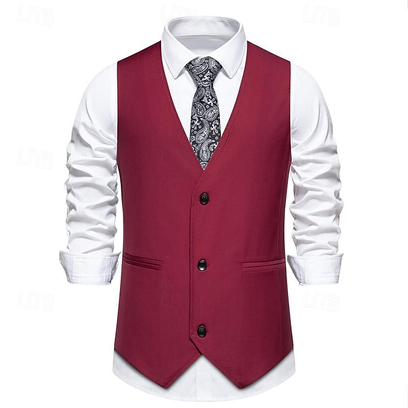 More information about Men's Vest Gilet Daily Wear Vacation Going out Vintage Fashion Spring & Fall Button Polyester Comfortable Plain Single Breasted V Neck Regular Fit Black Burgundy Dark Navy Vest