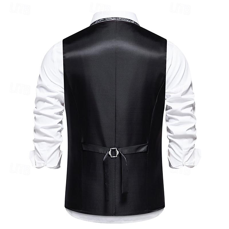 Men's Vest Gilet Daily Wear Vacation Going out Vintage Fashion Spring &  Fall Button Polyester Comfortable Plain Single Breasted V Neck Regular Fit Black Burgundy Dark Navy Vest 12