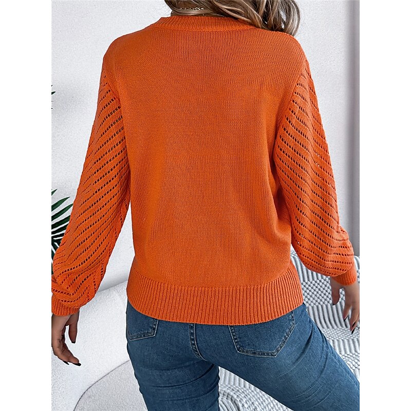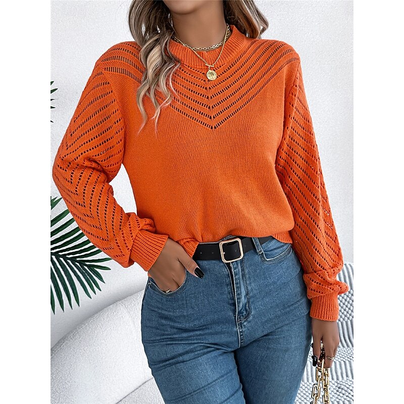 More information about Women's Sweater Pullover Sweater Jumper Casual Soft Pure Color Ribbed Crew Neck Hollow Out Knitted Long Sleeve Regular Tops Knit Outdoor Daily Weekend White Orange Fall Winter