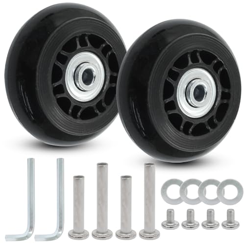 • ✿Complete Replacement Kit: Each package includes everything you need — 2 sturdy replacement luggage wheels, various axle sizes, screws, washers, and wrenches—ensuring a hassle-free installation. Diameter: 3.31 Inch / 84mm, Rim Width: 0.94 Inch / 24mm, Total Wheel Width: 1.06 Inch / 27mm, Center Bearing Internal Diameter: 0.24 Inch / 6mm, Length of Axles: 1.38 Inch / 35mm & 1.57 Inch / 40mm.