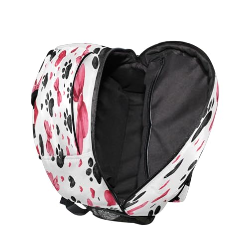 Dussdil Pink Bows Hearts Black Dog Paw Kids Backpack School Backpacks for Boys Girls 16 IN Book Back Pack Bag Casual Travel Daypack with Adjustable Shoulder Strap Zipper 4