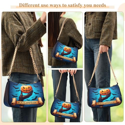 HOT ! Spooky Halloween Shoulder Bag for Women, Handbag with Chain Strap, Soft Purse Tote Bag for Ladies
