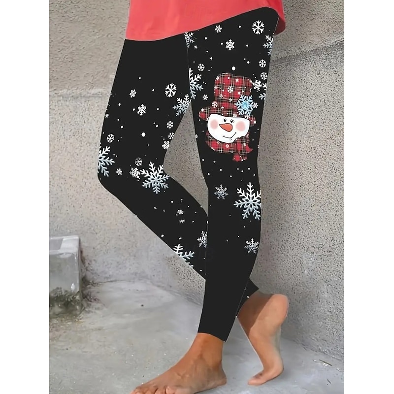 HOT ! Women's Leggings Vacation Vintage Fashion Full Length High WaistPantsUgly Christmas Graphic Snowflake Printing Thermal Warm Soft Breathable Stretchy Outdoor Vacation Street rice white Violet Black