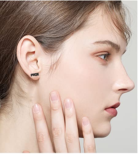 Funny Letters Stud Earrings Punk Love Heart Shaped Statement Small Cartilage Tragus Piercing for Women Men Fashion Initial Jewelry Personalise Gothic Gifts Birthday Xmas Friendship 5
