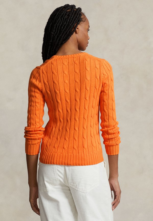 HOT ! CABLE KNIT COTTON V NECK SWEATER - Jumper - sun orange