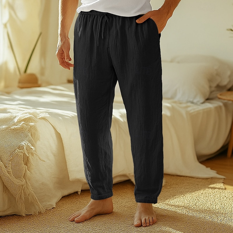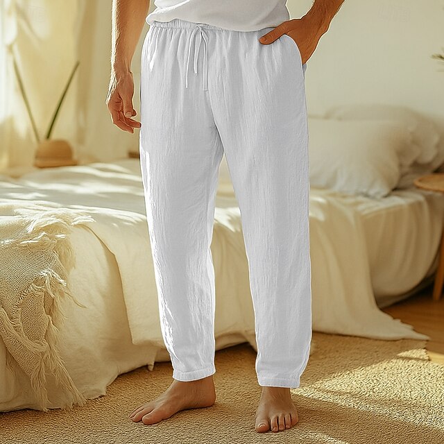 More information about Men's Linen Pants Trousers Summer Pants Baggy Pants Beach Pants Drawstring Elastic Waist Straight Leg Plain Comfort Breathable Knee Length Casual Daily Holiday Vacation Fashion Black White Inelastic