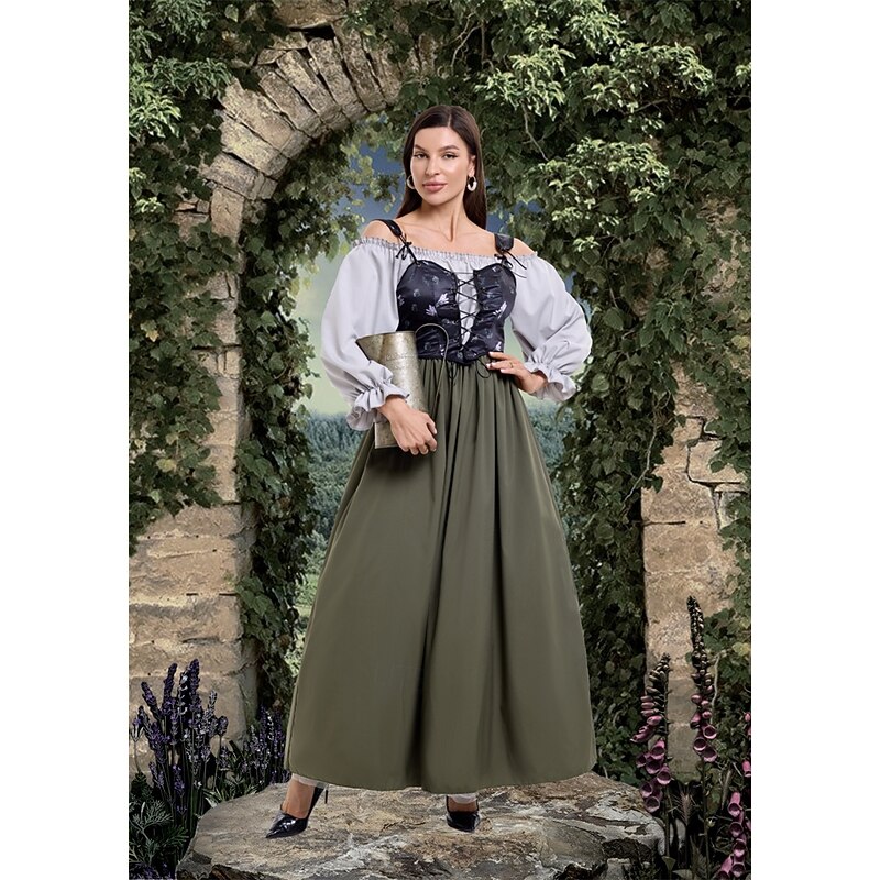 More information about Retro Vintage Victorian Medieval Dress Chemise OverDress Irish Peasant Fancy Dress Women's Celtic Fantasy Masquerade Masquerade Casual Daily Renaissance Fair Adults' Dress Corset