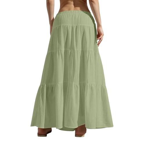 HOT ! Rvidbe Maxi Skirts for Women 2025 - Elastic Waist Drawstring Flared Ruffle Pleated Flowy A Line Skirt Beach Vacation Skirts