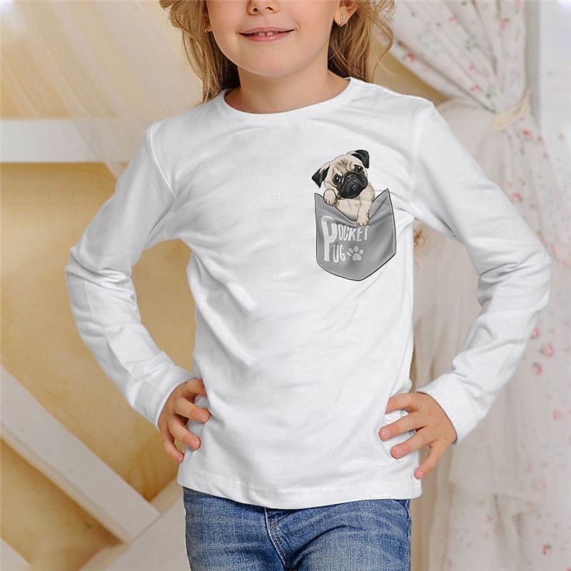 More information about Kids Girls' T shirt Animal Casual 3D Printing Long Sleeve Crewneck Cute 7-13 Years Fall Black White Ivory
