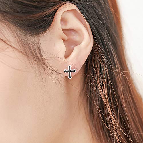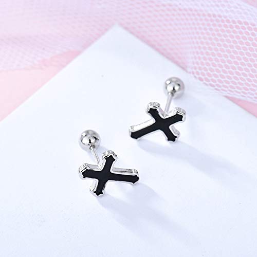 Black Cross Stud Earrings S925 Sterling Silver for Women Men Minimalist Punk Cartilage Small Helix Screw Back Tragus Piercing Ear Studs 20G Hypoallergenic Fashion Jewelry for Halloween Party 5