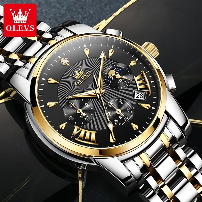 $31.99 - The New Olevs Brand Men'S Business Watch Luminous Waterproof Moon Phase Chronograph Multi-Functional Fashionable Quartz Watch Casual Sports Men'S Wristwatch 2025. Shop for cheap Quartz Watches online? Buy at lightinthebox.com on sale today!