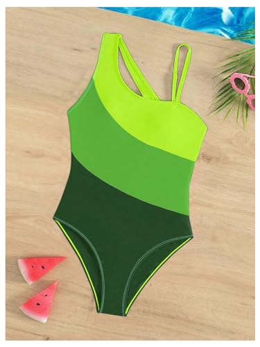 More information about MakeMeChic Girl's Color Block One Piece Swimsuit Asymmetrical Neck One Shoulder Tummy Control Bathing Suit