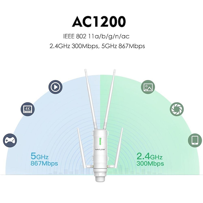 Wavlink Latest Technology 1200Mbps High Power 4x7dBi Antennas Dual Band 2.4GHz&5GHz Gigabit Ethernet Outdoor Weatherproof Wireless WIFI Router/AP Repeater White 12