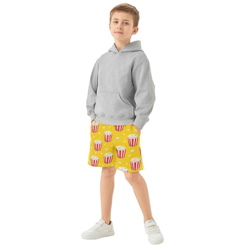 J JOYSAY Popcorn Bucket Yellow Boys Athletic Shorts Kids Youth Casual Shotrs with Pockets Elastic Waistband 4