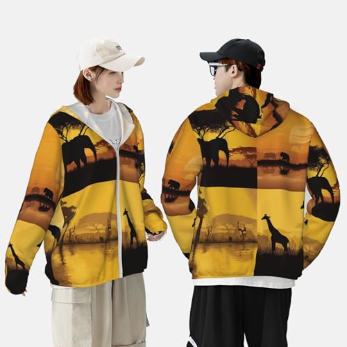 • Hooded Sun Shirts: Ideal for men and women alike, this African grassland animals sport hoodie suits various outdoor activities, comfortable fit, can be paired with a variety of bottoms. A thoughtful gift choice for family, friends, or colleagues who love active lifestyles.