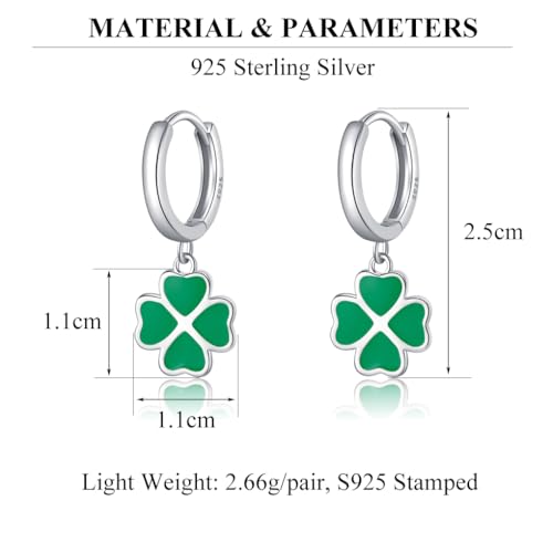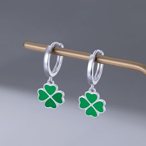 More information about SLUYNZ Solid 925 Sterling Silver Green Clover Earrings Hoop for Women Teen Girls Love Four Leaf Clover Hoop Earrings Huggie for Spring Summer