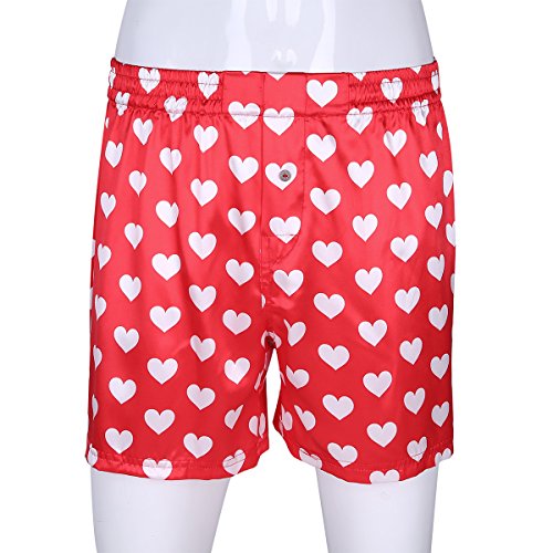 More information about Hansber Mens Love Heart Print Boxers Shorts Silky Satin Elastic Waist Lounge Shorts Underwear Sleepwear