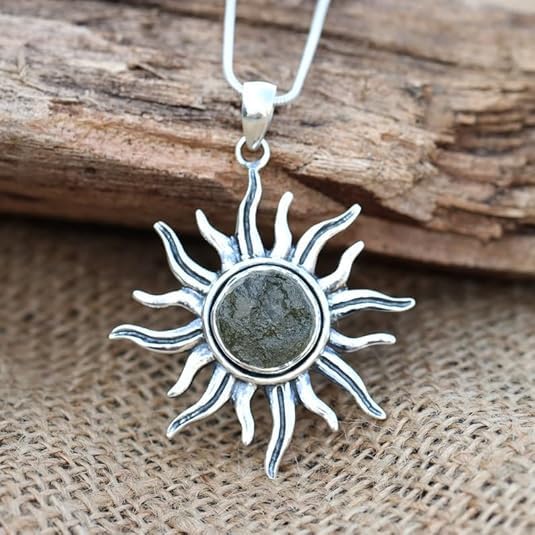 Authentic Moldavite Sun Pendant - 925 Sterling Silver, Healing Crystal From Czech Republic, Gift For Her 1