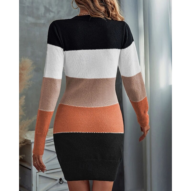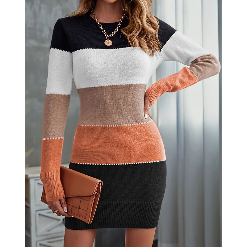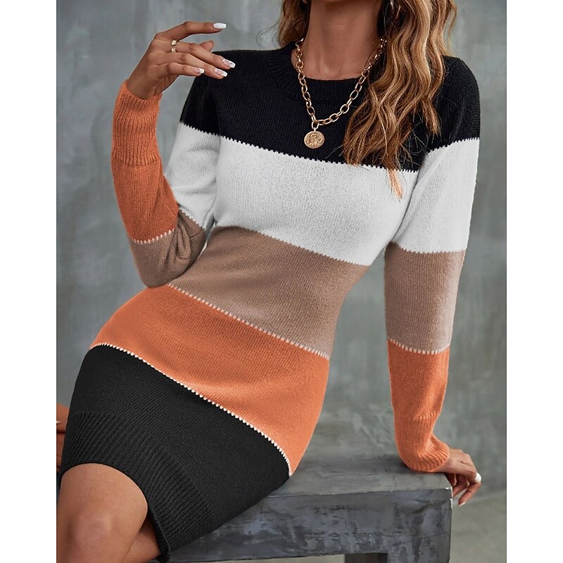 Women's Mini Dress Feather Dress Bodycon Modern Outdoor Going out Weekend Regular Fit Striped Long Sleeve Crew Neck Royal Blue Light Brown Spring Fall 9