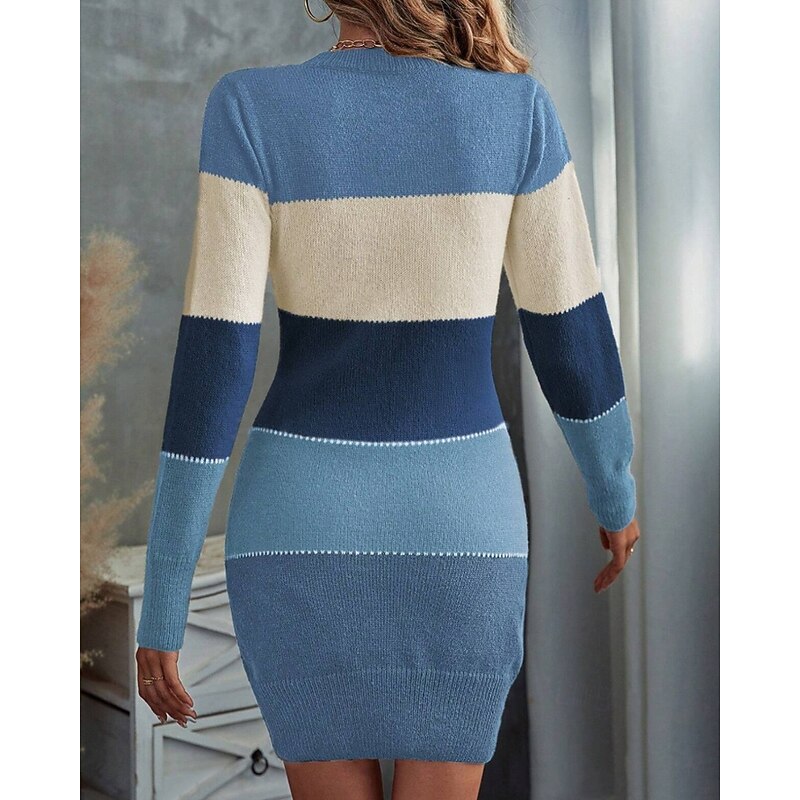 More information about Women's Mini Dress Feather Dress Bodycon Modern Outdoor Going out Weekend Regular Fit Striped Long Sleeve Crew Neck Royal Blue Light Brown Spring Fall