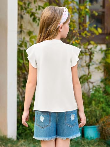 • Feature: The cute tops for girls are designed with a fold pleated from the below the crewneck, bow tie decoration, curved hem, classic chiffon button down tops, ruffle flutter short sleeve and loose fit style, which make your little girls beautiful and fashionable