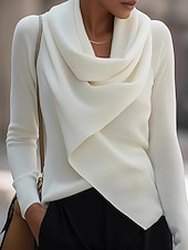 More information about Women's Blouse Solid Color Elegant Stylish Basic Long Sleeve Cowl Neck Regular Tops Daily Ruched White Spring Fall Winter