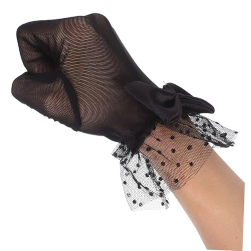 SAFIGLE 1 Pair Black Lace Gloves Fashionable Short Wrist Gloves for Women Tea Parties Evening Gowns and Wedding Celebrations Party 6