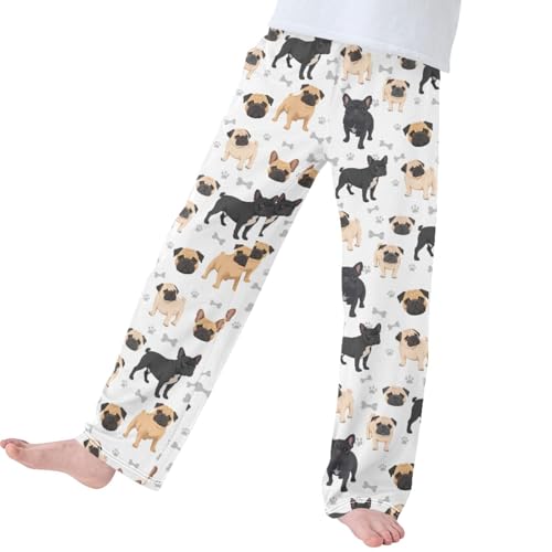 Pigsaly Boys' Pants Cute Black Brown Bulldog Long Bottoms Pug Dog Paw Print Jogger Pants Elastic Waist Trousers L 4