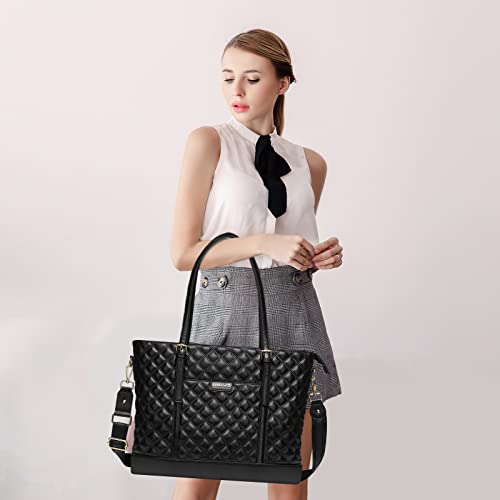 HOT ! MOSISO Laptop Tote Bag for Women, 15.6 inch Briefcase Computer Bag Compatible with MacBook, HP, Dell, Asus Notebook, 16 inch Large Capacity Rhombus Quilted Leather Laptop Bag with Small Purse, Black