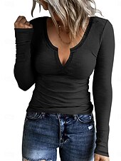 More information about Women's Blouse Solid Color Stylish Casual Long Sleeve U Neck Regular Tops Daily Buttons Black White Pink Red Blue Spring Fall Winter