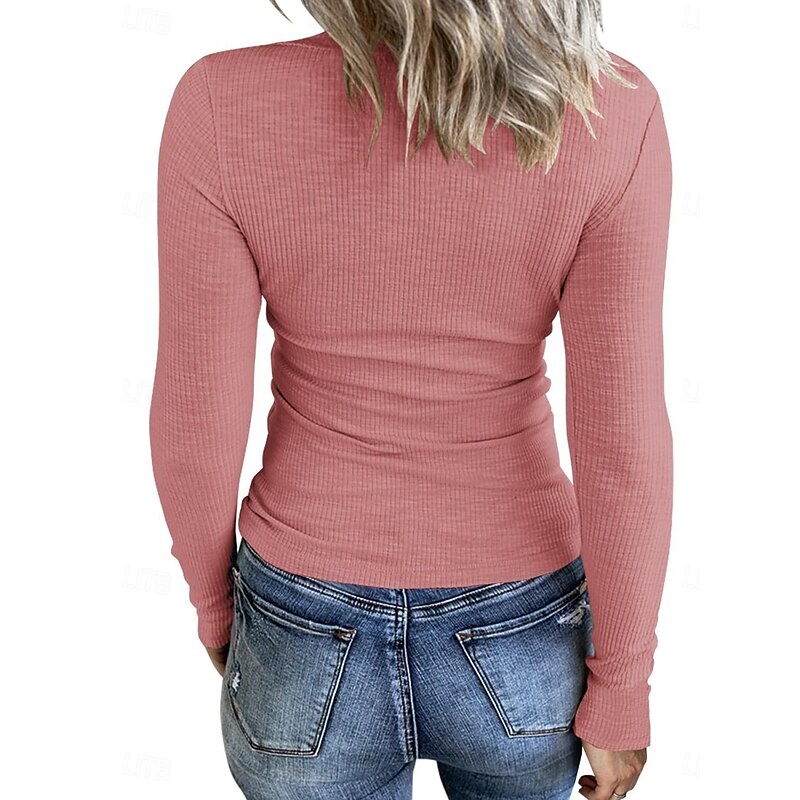 Women's Blouse Solid Color Stylish Casual Long Sleeve U Neck Regular Tops Daily Buttons Black White Pink Red Blue Spring Fall Winter 11