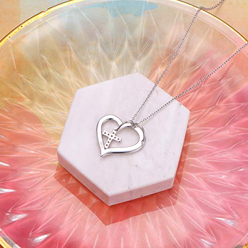 DAOCHONG S925 Sterling Silver Christian Cross Heart Inspirational Faith Bible Verse Necklace & Rinags for Women Teen Jewelry 1