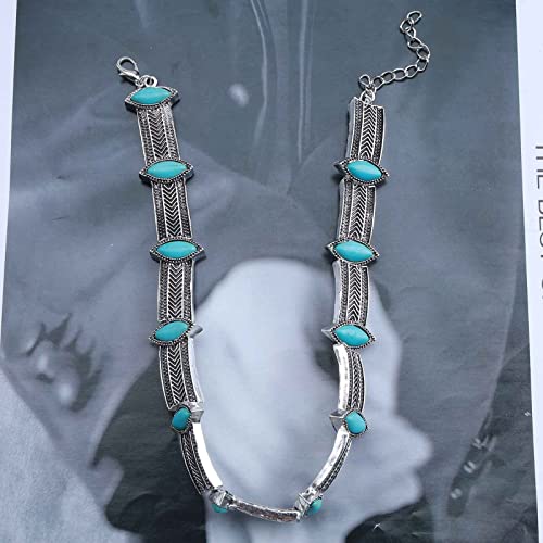 More information about Boho Turquoise Choker Necklace Vintage Turquoise Necklaces Chunky Silver Chain Necklaces Thick Collarbone Necklace Gypsy Necklaces Chain Jewelry for Women Tribal Necklace