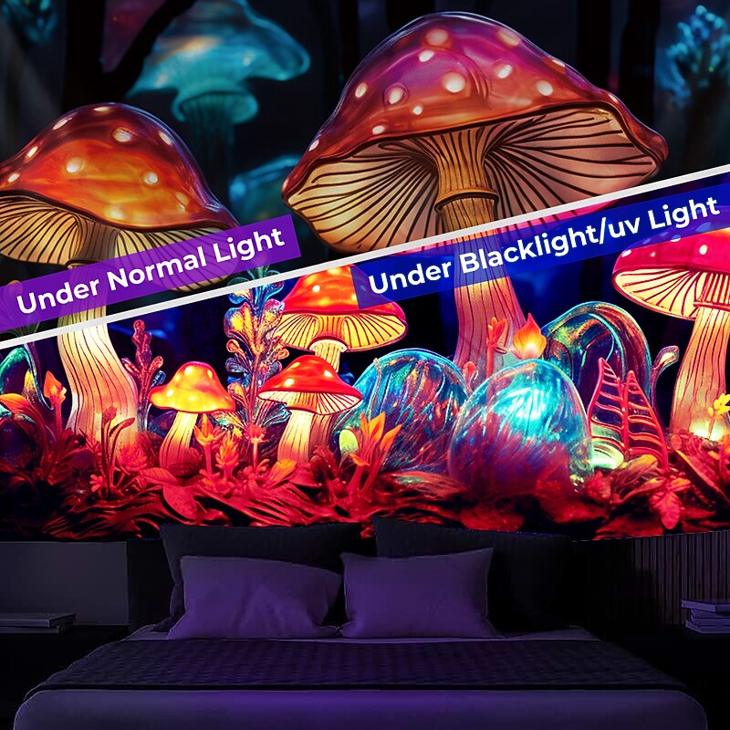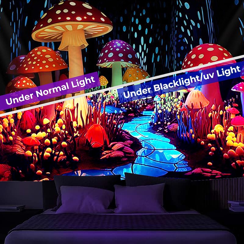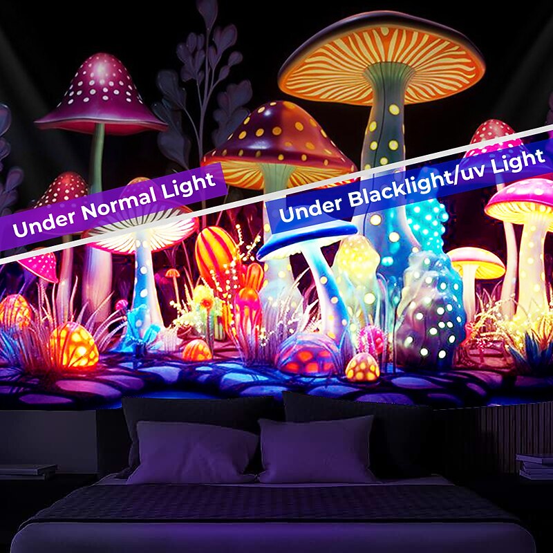 More information about Mushroom Fantasy Blacklight Tapestry Glow in the Dark Glow Party UV Reactive Trippy Misty Nature Landscape Hanging Tapestry Wall Art Mural for Living Room Bedroom
