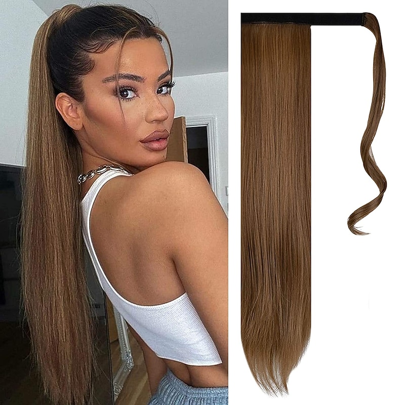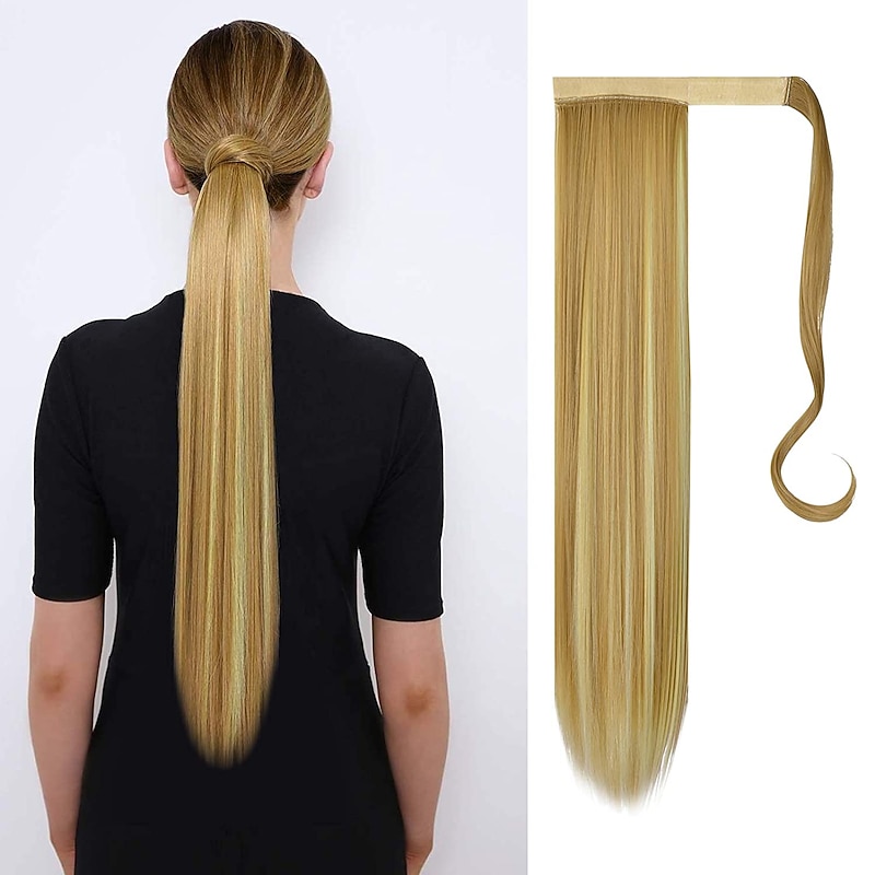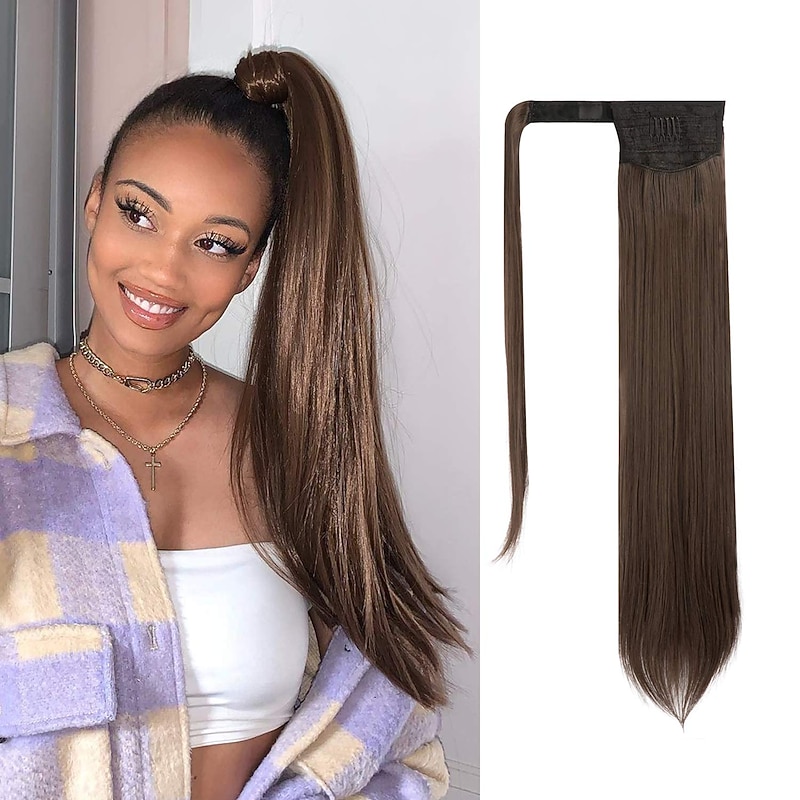 Straight Ponytail Extensions Long Wrap Around Synthetic Hair Piece Clip In Ponytail Hair Extensions  Synthetic Hair 28 Inch 150G 22