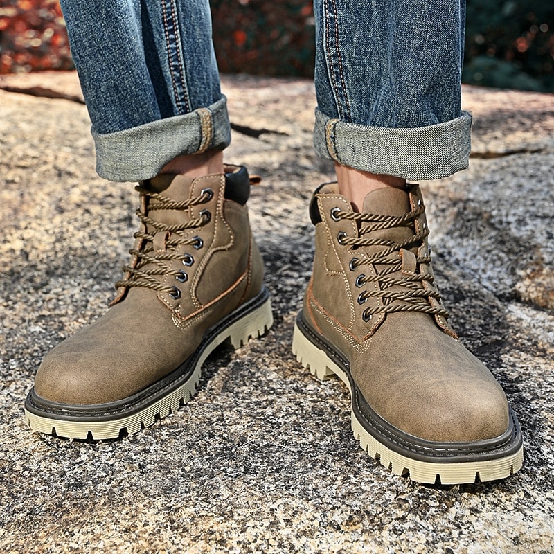 HOT ! Men's Classic Outdoor Work Boots – Durable Lace-Up Ankle Boots with Non-Slip Sole and Cushioned Insole for Construction, Farming and Everyday Wear