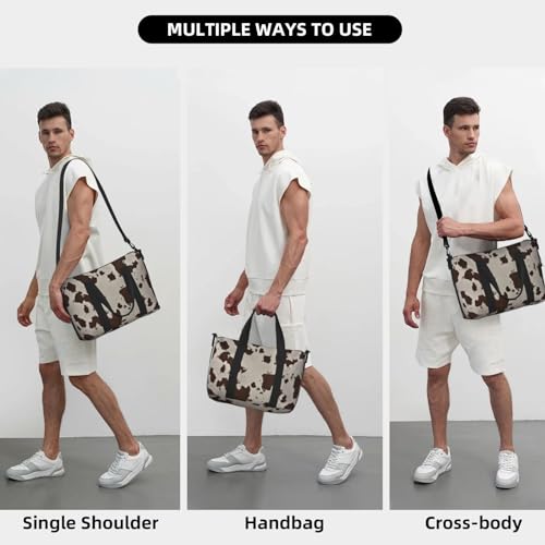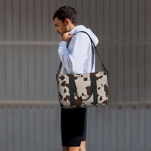 cowhide cow print Travel Duffel Bag, Sports Tote Gym Bag, Swim Pool Bag Large Shoulder Tote Bag for Beach Weekender, 202-406-121 5