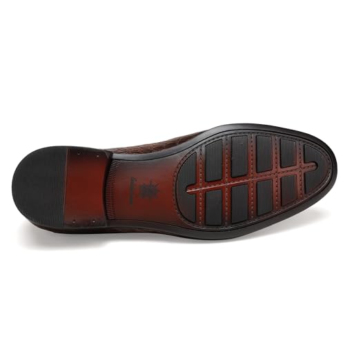 Leather Penny Loafers for Mens, Fashion Crocodile Printed Dress Shoes Casual Party Business Shoes Handmade Slip on Loafers 7