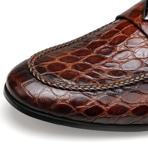 Leather Penny Loafers for Mens, Fashion Crocodile Printed Dress Shoes Casual Party Business Shoes Handmade Slip on Loafers 6