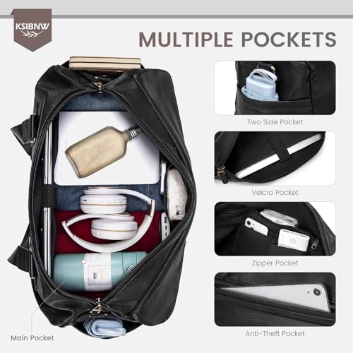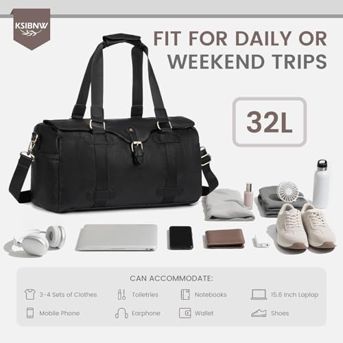 HOT ! KSIBNW Travel Duffle Bag for Women and Men, 32L Leather Carry on Large Waterproof Overnight Weekender Lightweight Duffle Shoulder Bag for Sports Gym Business Hospital Trips, Brown