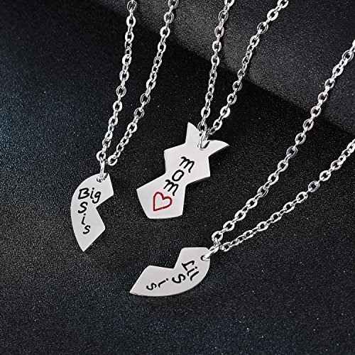 YEEQIN 3PCs Mother Daughter Necklace Set, Big Sis Lil Sis Mom Jewelry Gift Heart Necklace Gifts for Mother Daughters 3