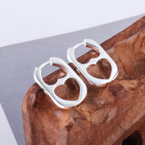 • Sterling Silver Heart Hoop Earrings: This heart Rectangle hoop earrings comes with a beautiful jewelry zipper bag, it's the perfect idea for a gift. Very lightweight design, 1.5cm/0.59inch in diameter, perfect size and the weight is light enough for all day wear.