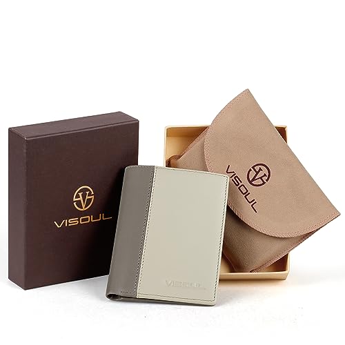 HOT ! VISOUL Leather Billfold Wallet for Men and Women Two Tone, Bi-fold Wallet with RFID Blocking 11 Card Slots 2 Cash Compartments (Light Gray and Dark Gray)