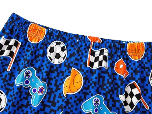 • Feature: This boys' loungewear features the game controller, basketball, and soccer graphics, with text of " EAT SLEEP GAME RESTART " in pixel style, making this an extra on-trend and beloved casual clothes set for boys at bed time. Crewneck & raglan sleeves on top. Pull-on elasticized waistband on the PJ pants for on-and-off convenience. This nighty with dark blue and light blue contrast colors will make the boys stand out on Pajama Day or slumber party.