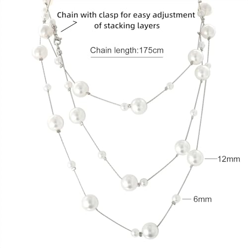• ❤Size Details❤The long double layered necklace length is 68", the pearl size is 6mm and 12mm.