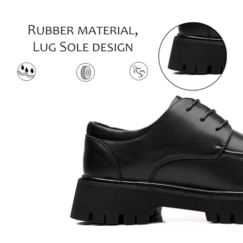 Men's Leather Platform Oxford Shoes Fashion Round Toe Non-Slip Lug Sole Lace-Up Business Dress Penny Loafers Casual Formal Work Shoes 5