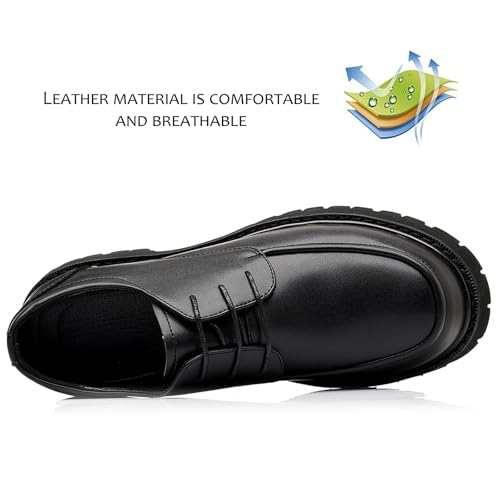 Men's Leather Platform Oxford Shoes Fashion Round Toe Non-Slip Lug Sole Lace-Up Business Dress Penny Loafers Casual Formal Work Shoes 4