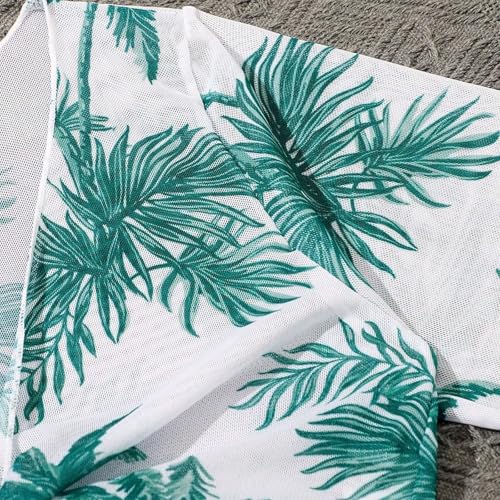 Girl's 4 Piece Swimsuits Tropical Print Halter Bikini Set Kids Bathing Suits with Kimono Cover Up Pants Tops Swimwear 6