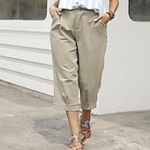 More information about Women's Capri shorts Casual Daily Calf-Length Plain Side Pockets Breathability Comfortable Inelastic Weekend Blue Khaki Gray Summer Regular Fit